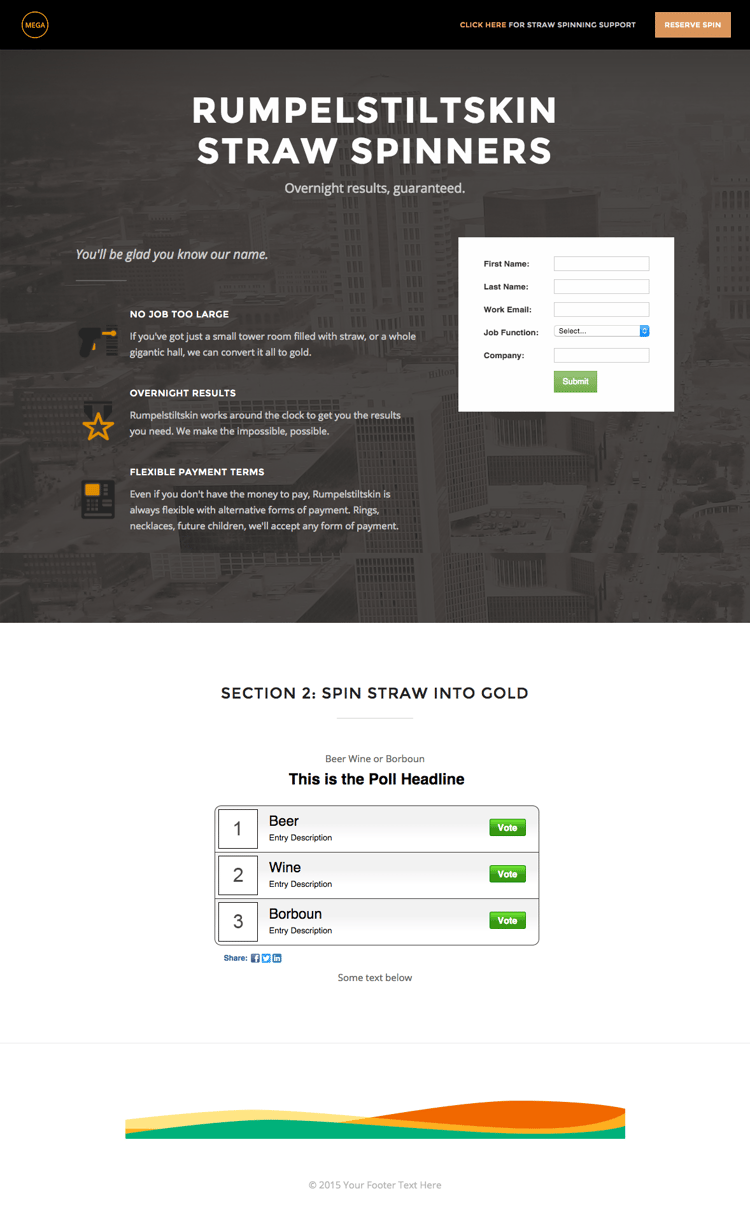 - incluye una imagen de fondo a pantalla completa, encabezado, eslogan, lista con viñetas y formulario.