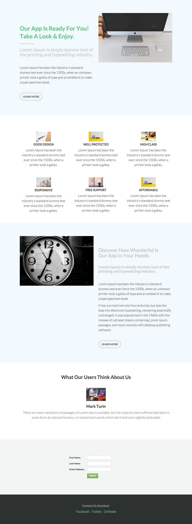- incluye imagen a pantalla completa, título, subtítulo, texto principal y botón.