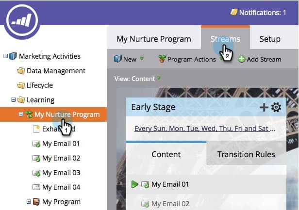 Seleccione su programa de participación y vaya a la ficha Transmisiones.