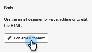 Después de la creación, haga clic en Editar contenido de correo electrónico.