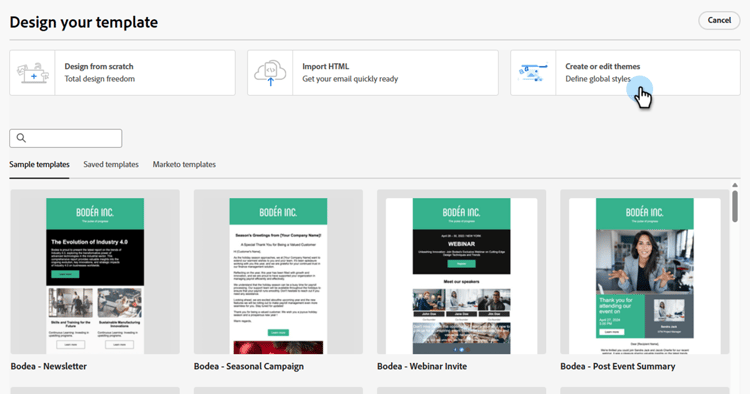 Con los temas de marca, cree fácilmente contenido reutilizable que se ajuste a una marca y un lenguaje de diseño específicos añadiendo estilo personalizado a las plantillas de correo electrónico.