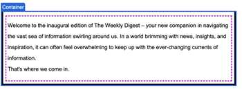 Implemente los diseños que desee. Por ejemplo, se puede seleccionar un componente de texto para aplicar cualquiera de los encabezados o el estilo de párrafo definido en la temática.