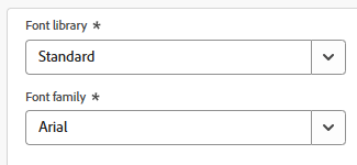 Elija entre bibliotecas de fuentes Standard o Google y sus respectivas familias de fuentes.