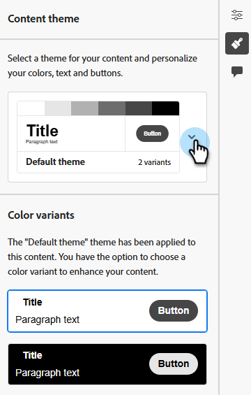 Todo el contenido del fragmento creado en el lienzo a partir de entonces adoptará la temática seleccionada. También puede aplicar cualquier variante de una temática al contenido.
