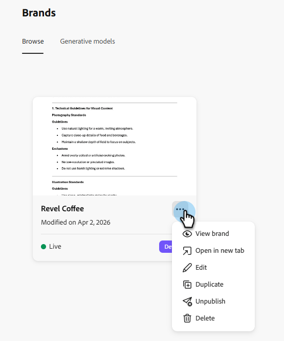 Puede designar una marca publicada como predeterminada para que se aplique automáticamente al generar contenido y calcular las puntuaciones de alineación durante la creación de la campaña.