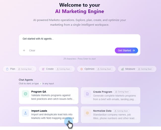 En Mi Marketo, haga clic en el mosaico Generar con IA.