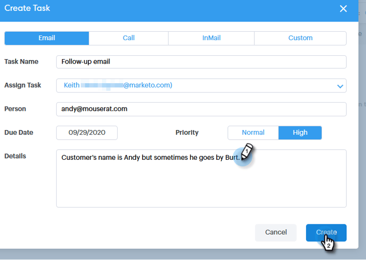 Si desea colaborar con otros integrantes del equipo, asignar tareas puede ser una buena manera de coordinar sus esfuerzos de prospección.