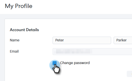 Se abre la página Mi perfil de forma predeterminada. En Detalles de la cuenta, active la casilla de verificación Cambiar contraseña.