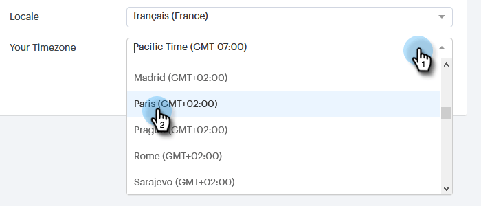 Haga clic en el menú desplegable Su zona horaria y elija una.