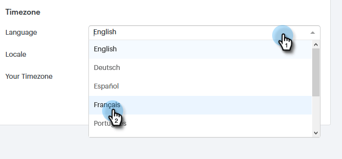 Para cambiar el idioma, haga clic en la lista desplegable Idioma y elija.