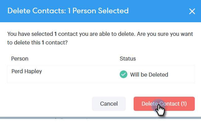 Haga clic en Eliminar contacto para confirmar.