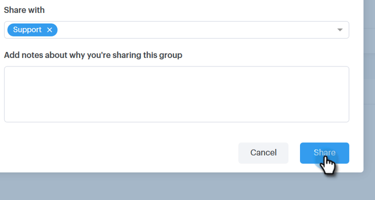 Haga clic en el menú desplegable y seleccione el equipo con el que desea compartir el grupo.
