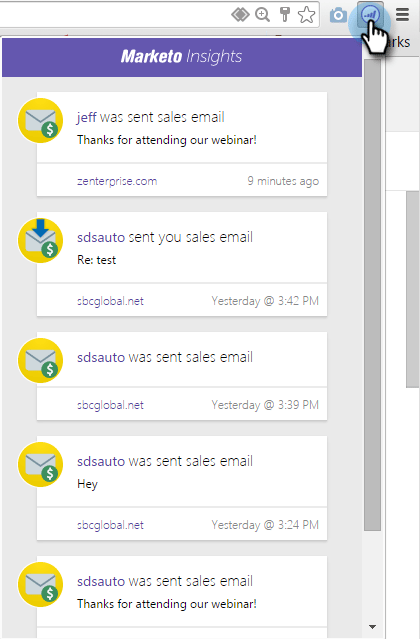 También puede usar el Panel de actividad global de Google Chrome para ver una lista completa de las actividades más recientes que se han producido para todas las personas con las que ha mantenido correspondencia recientemente. Se trata de una fuente actualizada en tiempo real que muestra continuamente el número de actividades no leídas en el icono.