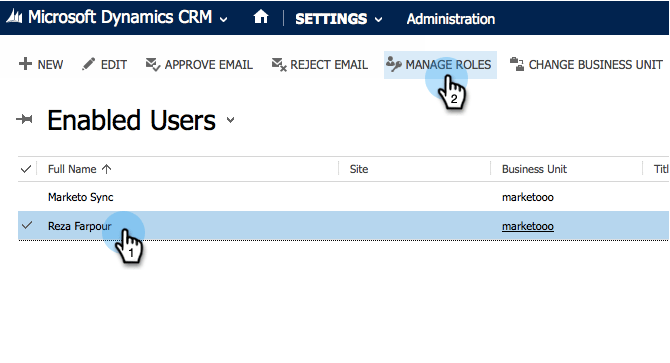 Seleccione a los usuarios a los que desea otorgar acceso a Sales Insight y haga clic en Administrar roles.