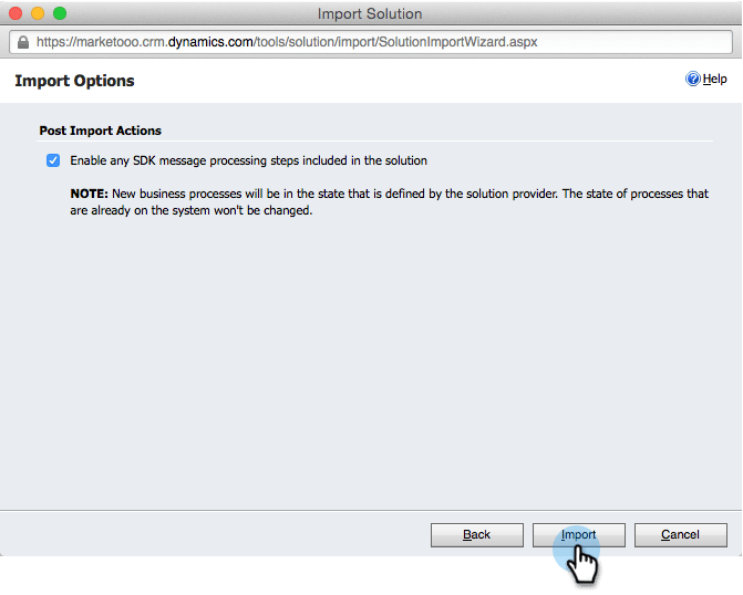 Bien, ahora es el momento de importar la solución Marketo Sales Insight en Microsoft Dynamics.