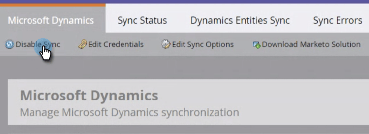 note note NOTE Si no ves un botón Deshabilitar sincronización en tu instancia, ponte en contacto con el Soporte técnico de Marketo.