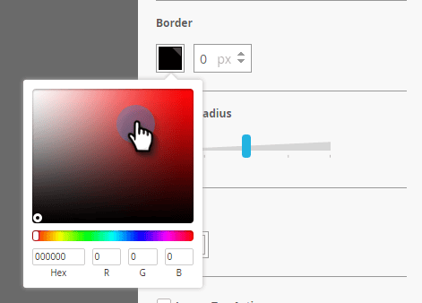 Opcionalmente, aplique un borde de imagen. El valor predeterminado es Desactivado. En primer lugar, seleccione el color haciendo clic en él o introduciendo los números hexadecimales o de RGB en el selector de color.