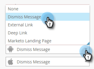 note note NOTE Para las acciones de toque para imágenes, botones o fondos, puede configurar diferentes acciones para las plataformas Apple y Android. Por ejemplo, los vínculos profundos se gestionan de forma diferente en Apple y Android. Si el mensaje va únicamente a una plataforma u otra, deje la otra en la configuración predeterminada o seleccione Ninguna.