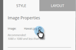 ¿Quieres cambiar de opinión y utilizar una imagen diferente? No hay problema. Haga clic en X junto al nombre de archivo de la imagen.