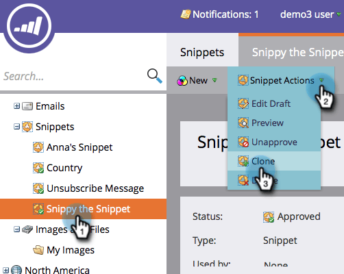 Vaya al fragmento y, a continuación, en Acciones de fragmento, haga clic en Clonar.