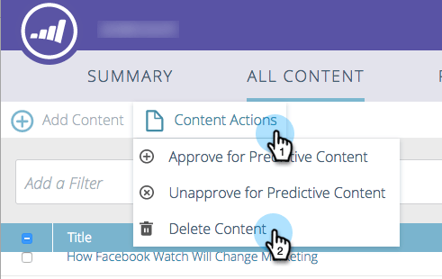 Haga clic en la lista desplegable Acciones de contenido y seleccione Eliminar contenido.