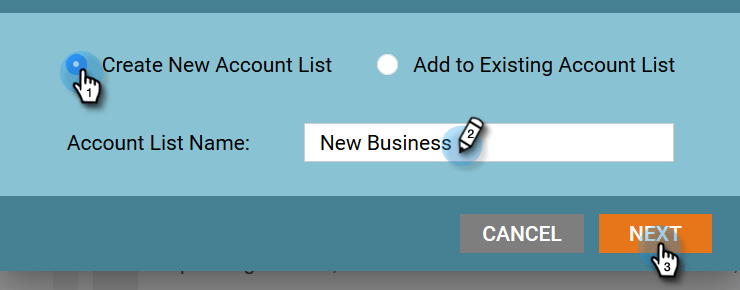 note note NOTE Para guardarlo en una lista de cuentas existente, seleccione esa opción, haga clic en la lista desplegable, seleccione la lista de cuentas que desee y haga clic en Siguiente. -