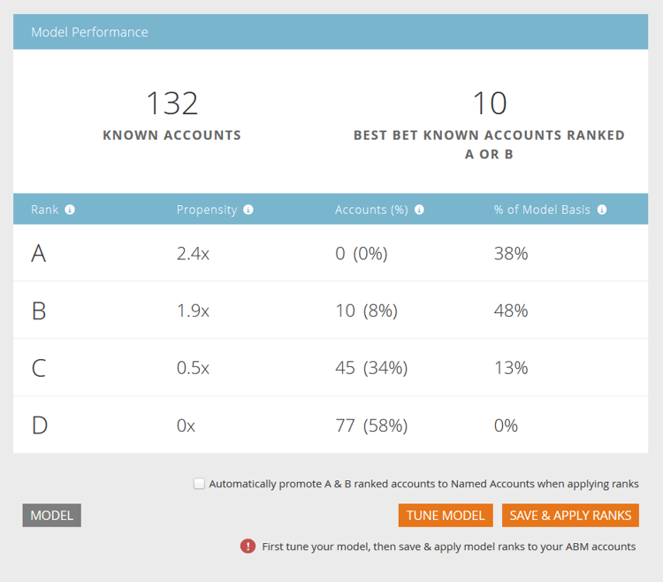 Asigne un nombre al modelo y elija el tipo de lista o lista de personas que servirán de base para el Perfil de cliente ideal (ICP). Haga clic en Crear modelo cuando haya terminado.
