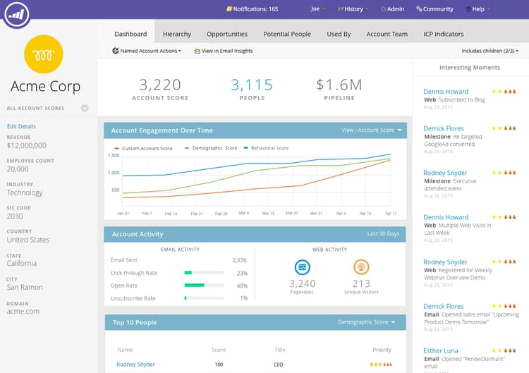 Disponible para los usuarios de Marketo Sales Insight, vea los momentos interesantes resumidos a nivel de cuenta.