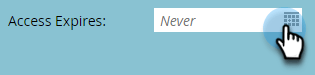 Para establecer una fecha de caducidad para el acceso del usuario (opcional), haga clic en el icono del calendario. De forma predeterminada, se establece en "nunca".