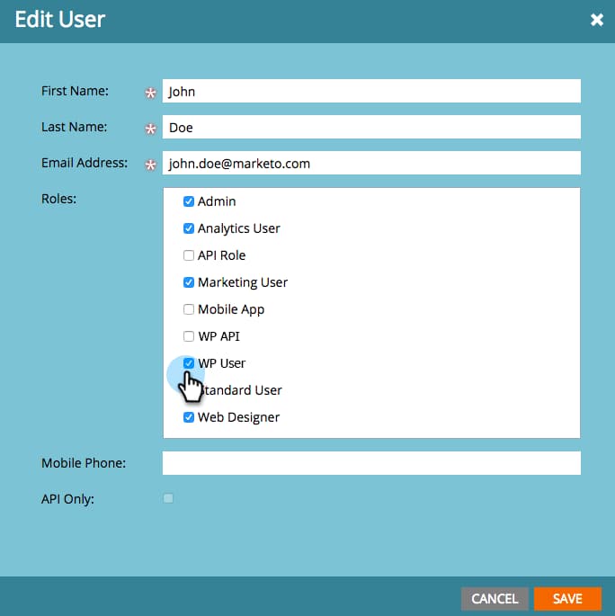 Seleccione la función de usuario WP para todos los espacios de trabajo.
