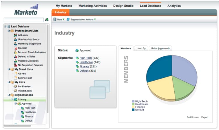 La segmentación es un grupo de segmentos, que son un grupo segmentado de personas a las que comercializa. Los segmentos se definen mediante reglas que se rigen por criterios de filtro similares a las listas inteligentes. Sus segmentos pueden basarse en datos demográficos, como el puesto o el sector, o en comportamientos como páginas web visitadas o vínculos en los que se ha hecho clic.