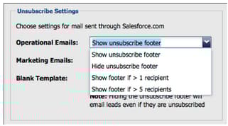 Configure cuándo y si se muestra el pie de página de cancelación de suscripción para los correos electrónicos enviados a través de Sales Insight.