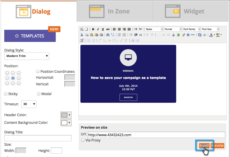Ahora tiene la capacidad de compartir rápida y fácilmente un vínculo de vista previa de campaña de RTP.