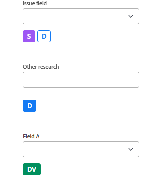 Los formularios personalizados muestran iconos para indicar cuándo se aplica la lógica a los campos.