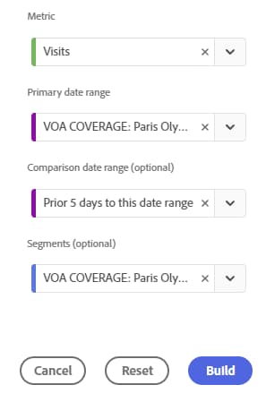 En este artículo, utilizaré el ejemplo de seguimiento de la cobertura de los Juegos Olímpicos de París en mi organización. Para ello, no basta con buscar una sección específica de un sitio web o filtrar por palabras clave en un titular. Para obtener datos de todo el contenido relacionado con las Olimpiadas fue necesario filtrar por varias palabras clave en el titular, el nombre del vídeo, el nombre del audio y la URL. Cuando es editor de noticias con sitios web en unos 45 idiomas, debe configurar un filtro para cada palabra clave en todos los idiomas admitidos. Una vez creado ese segmento, ahora podemos medir casi todo el contenido relacionado con las últimas Olimpiadas.