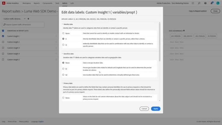 Conozca el proceso de añadir etiquetas de privacidad de datos a las variables de Analytics, incluido un desglose de qué significa cada tipo de etiqueta y cuándo utilizarlas.