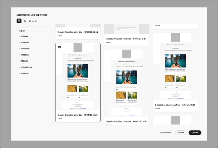 Sélectionnez une expérience et cliquez sur Utiliser.