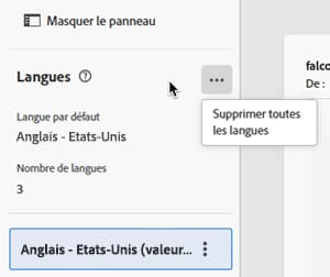 - Définir comme langue par défaut : définissez la langue comme langue par défaut. Lorsqu’un profil ne possède aucune langue définie, le message est envoyé dans la langue par défaut.