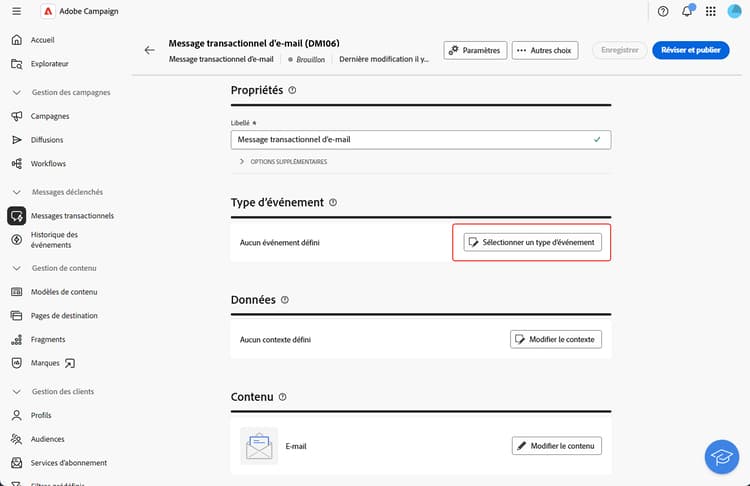 note note NOTE Vous ne pouvez pas choisir un type d'événement déjà utilisé dans un autre modèle de message transactionnel. {modal="regular"}