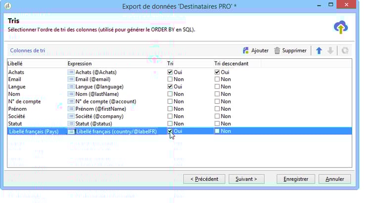 Sélectionnez l'ordre de tri des colonnes.