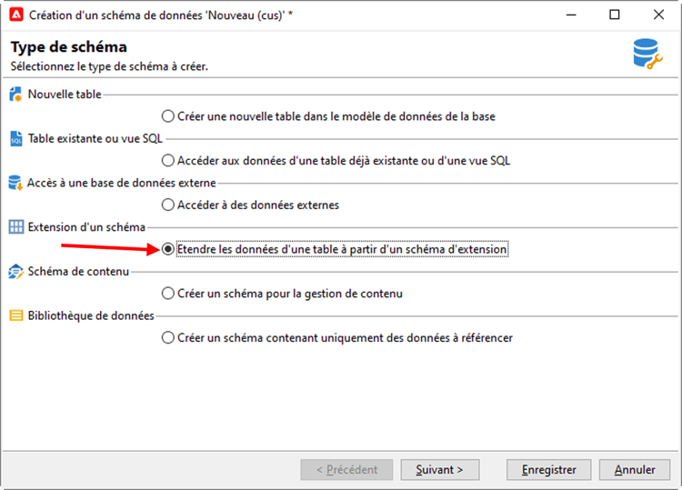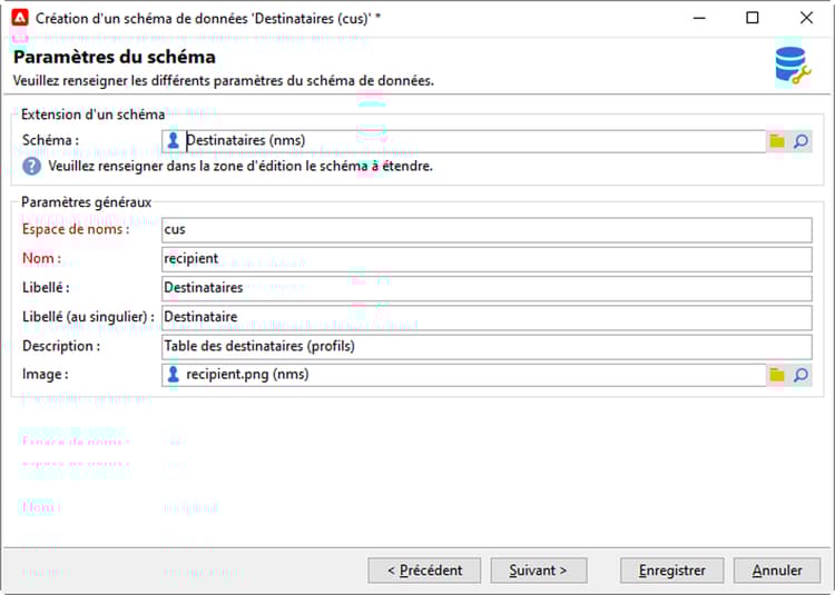 Identifiez le schéma prédéfini à étendre et sélectionnez-le.