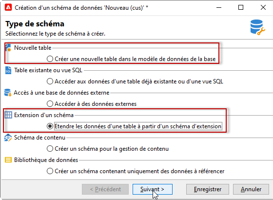 Pour plus d’informations, consultez la section Créer un nouveau schéma.
