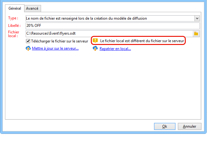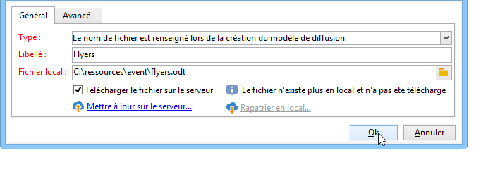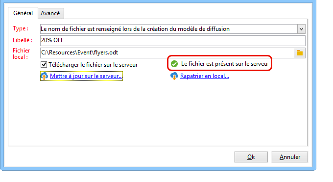 Le fichier est alors disponible sur le serveur pour être joint aux diffusions créées à partir de ce modèle.
