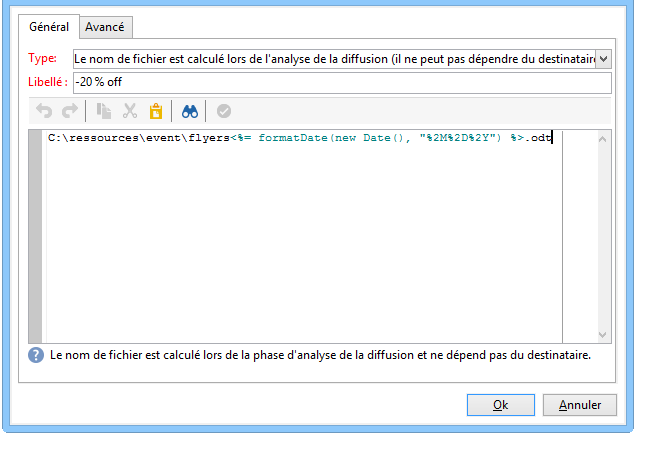 - Le nom de fichier est calculé au moment de l'envoi pour chaque destinataire (il peut dépendre du destinataire)