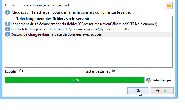 Un message vous indique que le fichier a bien été téléchargé sur le serveur :