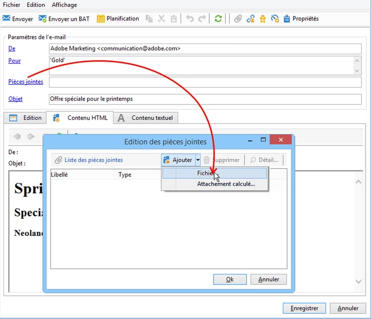 Vous pouvez joindre un ou plusieurs fichiers à une diffusion d’email.