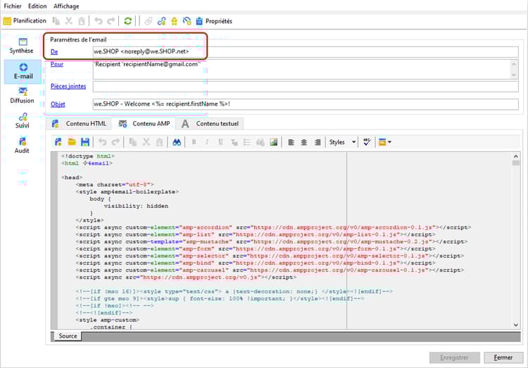 Actuellement, vous pouvez tester l'envoi d'un email AMP en deux étapes :