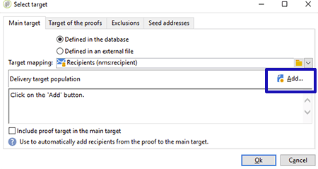 Cliquez sur Ajouter pour sélectionner des destinataires pour la diffusion. Une fois les destinataires sélectionnés, cliquez sur Ok pour retourner à la diffusion.