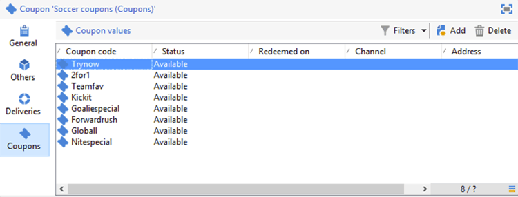 note note NOTE Les coupons individuels peuvent être importés en masse. Pour plus de détails sur lʼimport et lʼexport, consultez cette section.