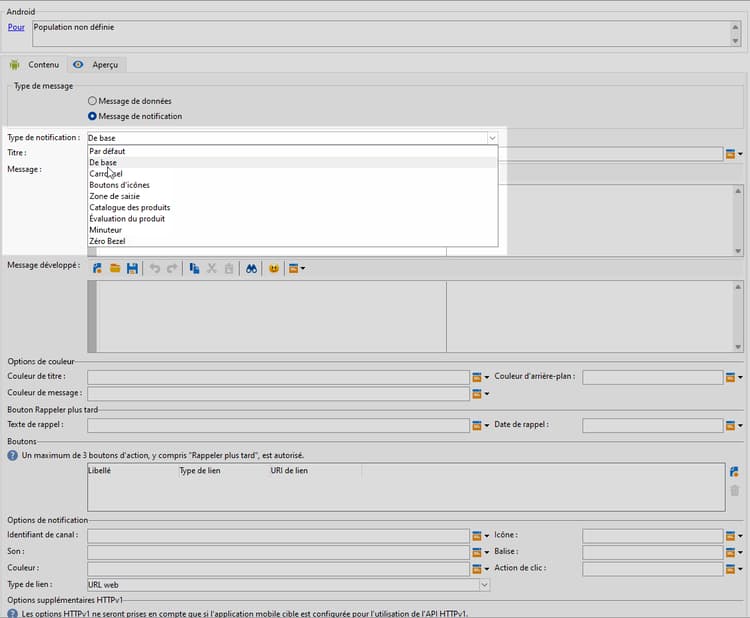Dans le menu déroulant Type de notification, sélectionnez De base.